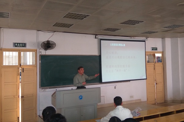 刘列教授首先讲述了艰苦奋斗是中华民族的宝贵精神财富、是我党我军的优良传统,并举出了历代封建王朝更替周期率的例子,强调党员只有始终与人民同甘共苦方能破解王朝更替周期率。随后,刘教授讲到要把握时代要求,以马兰为例,详细讲解了“马兰精神”是“两弹一星”精神的重要组成部分,其内涵是“艰苦奋斗干惊天动地事,无私奉献做隐姓埋名人”,学习“马兰精神”就是学习艰苦奋斗的精神。紧接着,刘教授提出了自觉做艰苦奋斗的坚持者实践者,让艰苦奋斗伴随一生的观点,作出我们应该坚持勤俭、做人做事要艰苦奋斗的结论。最后邓辉副书记上台为本次党课作了总结。