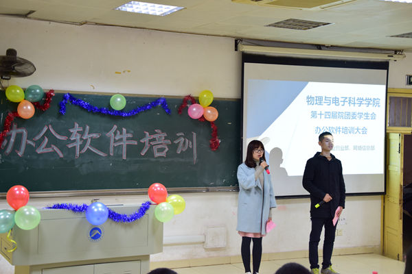 网络信息部和就业创业部联合举办的办公软件培训大会在十教附一102召开。大会嘉宾有学生会主席胡清梅、副主席张浩琪。