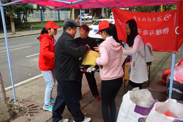 青年志愿团与潇湘学院、生命科学学院学院等多个兄弟学院志愿团联合开展“情暖严冬,爱暖朝阳”旧衣物捐赠活动,并在南北校多地设点收集旧衣物。