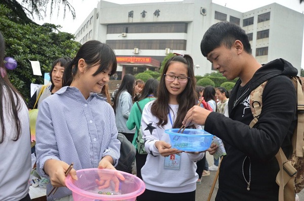 也是其中一道亮丽的风景线。"挑豆子"游戏需要参与者左手拿筷子,并在一分钟以内夹出十个弹珠,其具有一定的挑战性,引起了同学们很大的兴趣,纷纷跃跃欲试。"气球漂流"——同学们把自己心之所想写在气球上,并把它挂起来以寄予美好的期望。有趣的游戏使得现场欢乐的氛围一度达到高潮,每场游戏都在同学们欢声笑语中进行着。活动过程中,参与游戏的同学们都表示,十分喜欢这类活动,每次参与,都有不一样的收获。