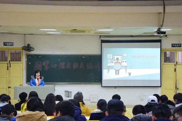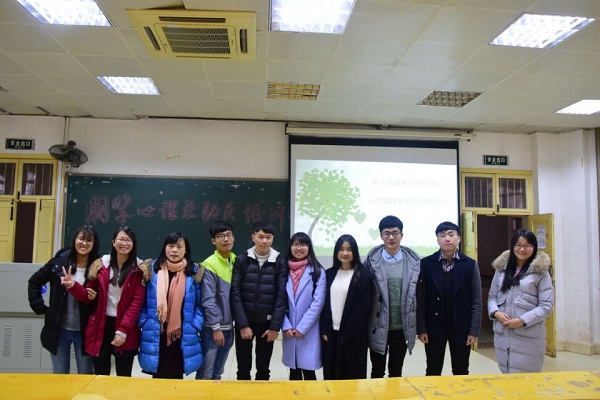 于12月13日14:00在十教附一102举办了第十期朋辈心理互助员心理健康知识技能培训。到场嘉宾有学工办孙婵老师、学生会主席胡清梅、副主席张浩琪。参加此次培训的还有学生会代表,以及各寝室寝室长。