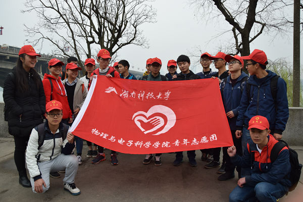 青年志愿团与机电学院、法学院等多个兄弟学院志愿团联合开展以“保护湘江母亲河”为主题的清理活动,活动地点位于湘江一大桥下的河岸。