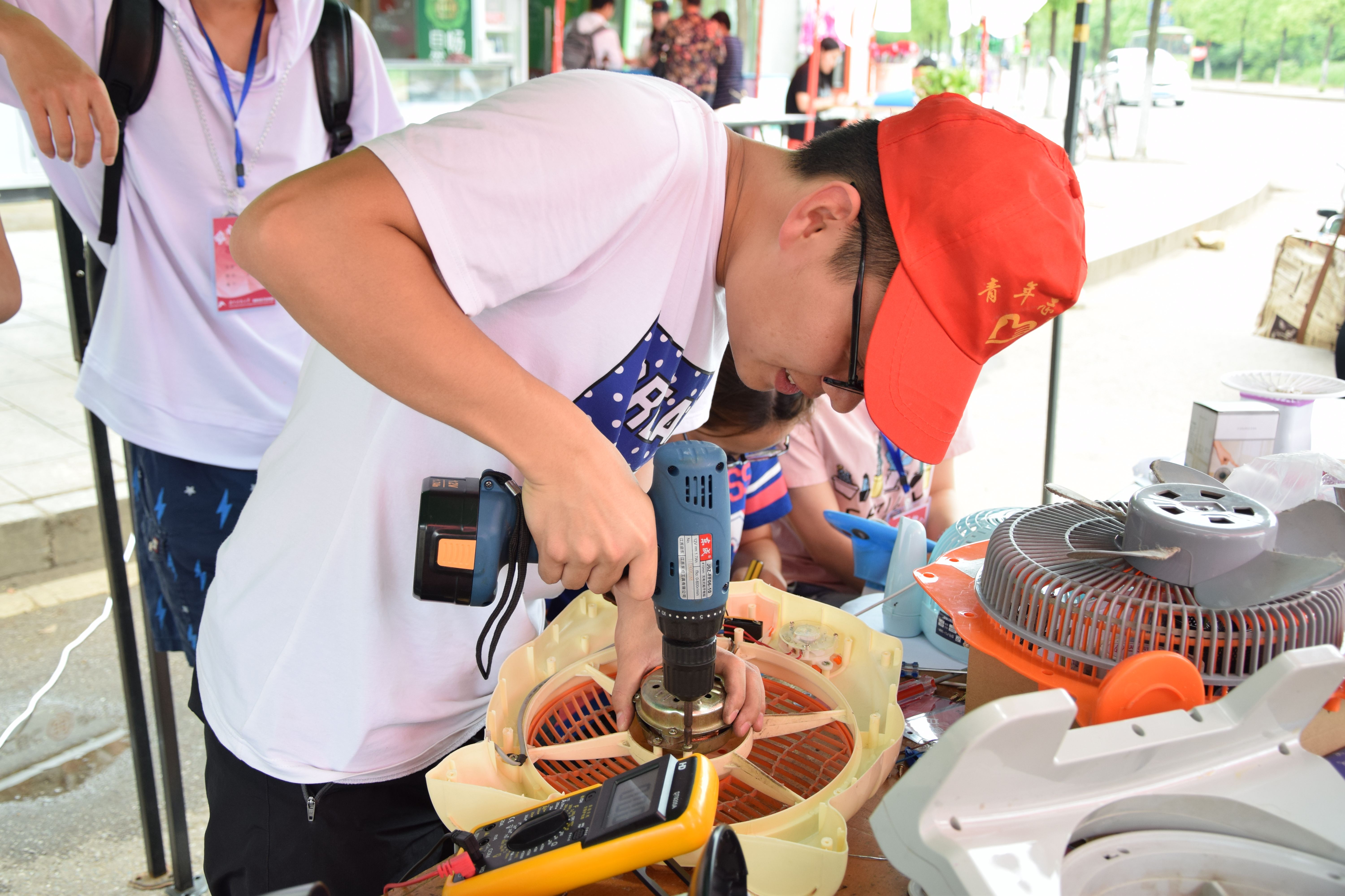 的义务维修人员精神抖擞,以良好的风貌迎接师生和居民的到来。每一次拆分与组装,每一次焊接与检测,维修人员都聚精会神,一心一意,尽百分之百的努力为有困难的师生和群众解决各种积扰问题。在学生宿舍八区维修点,一名维修人员半蹲着,目不转睛地进行焊接,鼻尖上渗出了密密的汗珠;在北校工商银行维修点,一名维修人员拿着损坏的电器,耐心地向一位老奶奶讲解着,展现着物电学子的热心和至诚。临近中午,天气变得愈发闷热,但是丝毫没有影响看片网