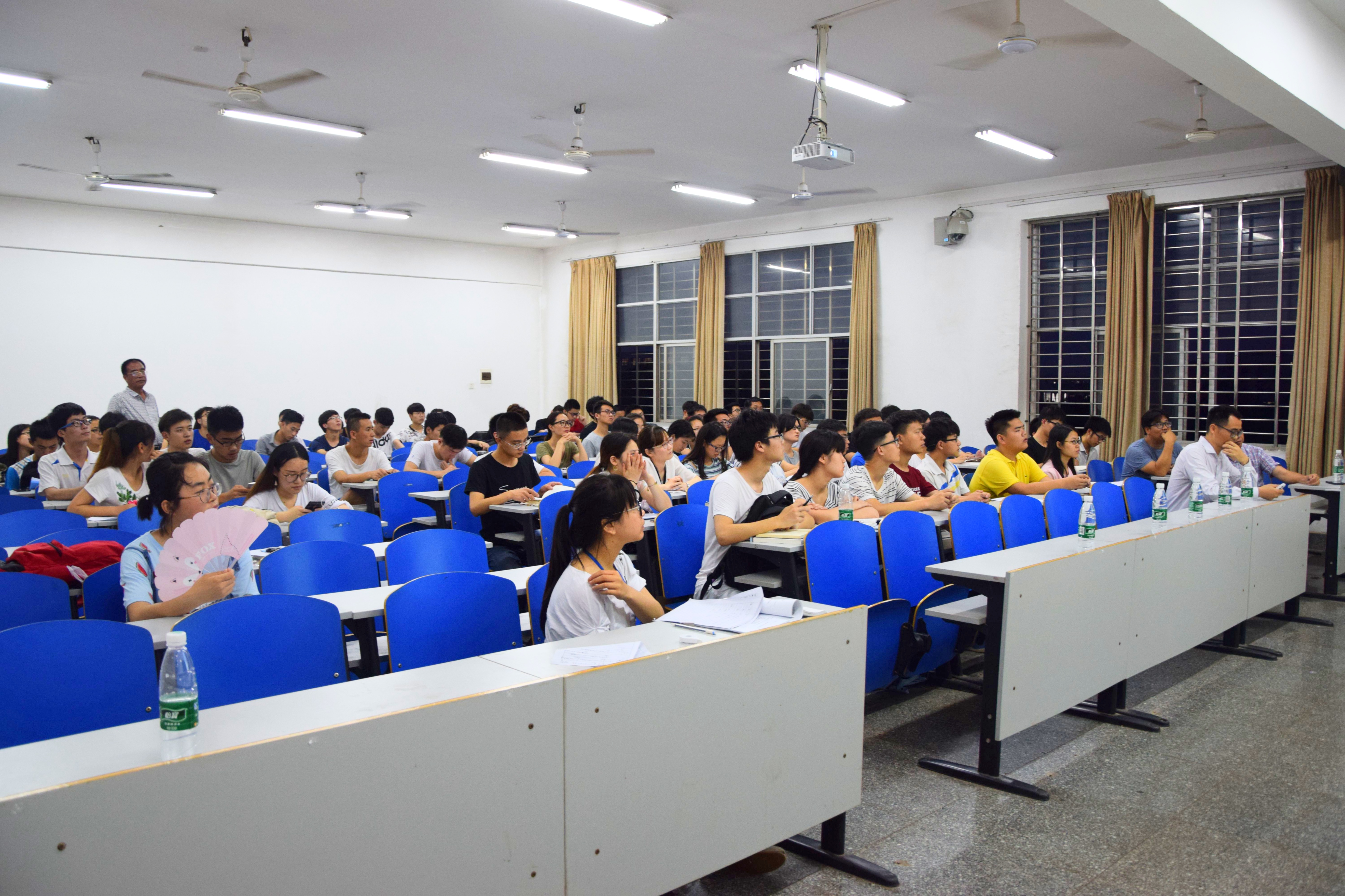 讲学开始,刘教授展示了基于二维层状材料自旋电子学和谷电子学的研究,他用精准与专业的知识让同学们看到了科学前沿领域的发展。紧接着,杨兵初教授向大家介绍了中南大学物理与电子学院的科研、实验、师资等方面的情况,同时向同学们分析了他们学院考研的基本情况。
