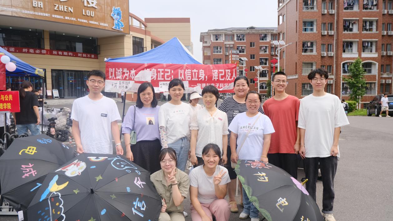 在活动摊点,耀眼的红色横幅标语“以诚为本,修身正己;以信立身,泽己及人”吸引着过路的同学,现场有涂鸦诚信伞,答题抽奖,硬笔书法书诚信等多种活动。老师同学们积极参与活动,丰富的游戏调动了大家学诚信、践诚信的积极性,帮助大家领悟诚信的意义和重要性,引导大家树立诚信意识,弘扬诚信文化,做诚信大学生。