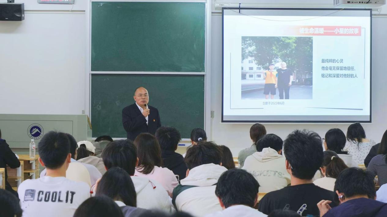 他打破大家对教师职业的固有认知,鼓励在场学子怀揣对教育的热爱,坚守育人初心。讲座尾声,他向全体师范类学子送上殷切祝愿,期盼大家成长为有温度、有情怀、有担当的新时代教育工作者。
